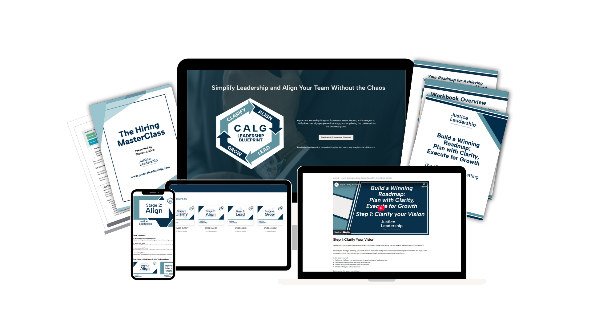 It’s a structured leadership framework built by Justice Leadership Group. The Blueprint helps owners/managers Clarify direction, Align their team, Lead consistently, and Grow sustainably.